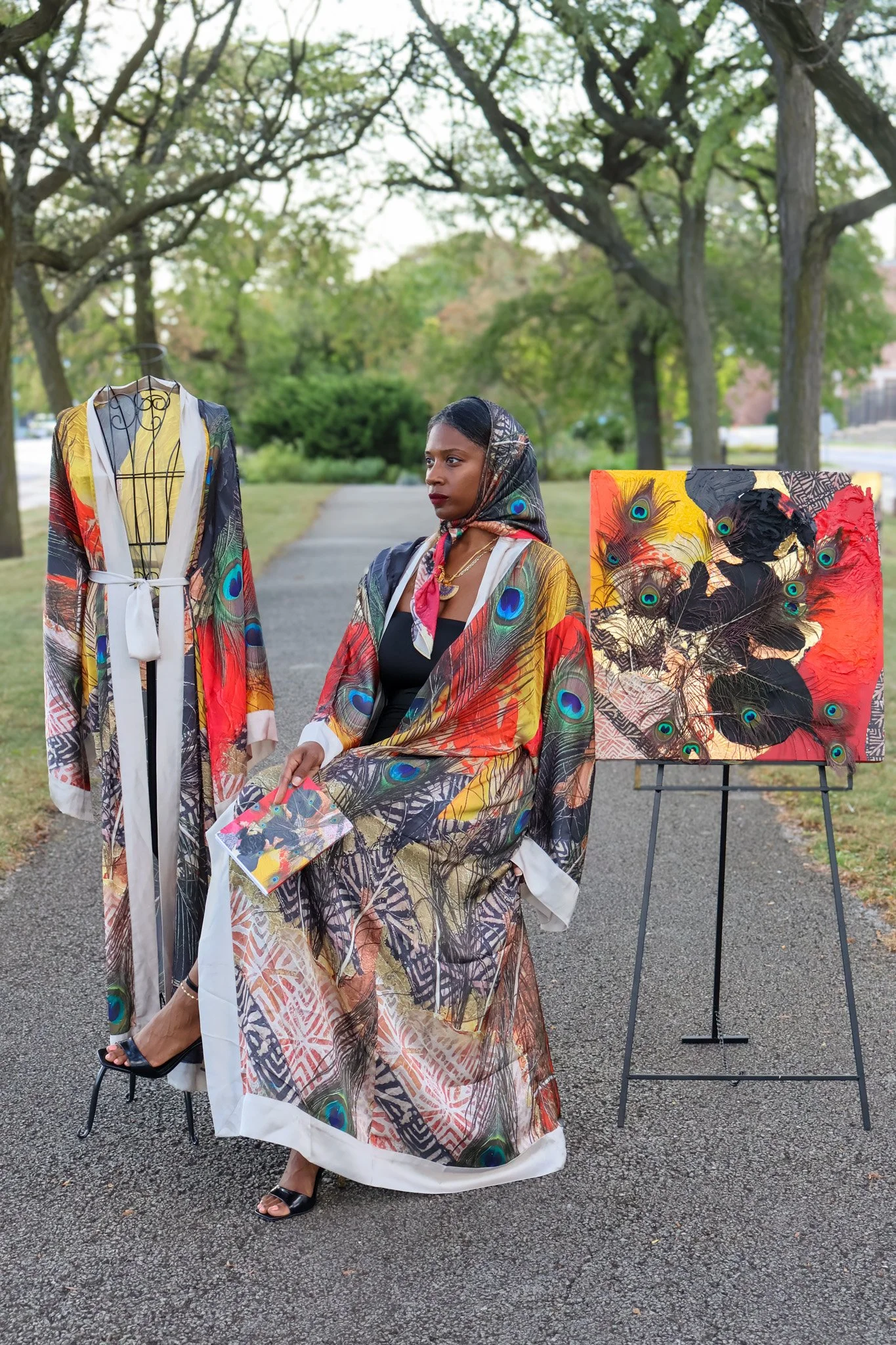 My work draws inspiration from Black Dandyism, a tradition that elevates dressing into a cultural statement, an act of protest, and a celebration of individuality. From an early age, I was exposed to fashion as a form of self-expression, surrounded by my father’s impeccable style and my grandmother’s timeless grace. This environment planted the seeds for “art on your wall or in your pocket”—the beginning of my luxury silk collection.